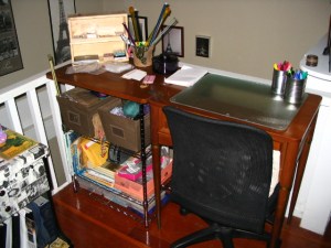 I told you I would have a picture of a much more organized space before the weekend was over. Thank you to Target and their awesome sale on 3 tiered metal shelving, I’m organized and ready to craft away. I doubt I’ll get anything else done in the way of crafting this weekend, but this was a pretty big project and I’m sure the crafting gods will forgive me for taking a break until Monday.