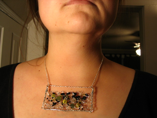 It does make perfect stay inside an craft weather. Tonight I worked on the knit pendant you see in the picture above. Some Etsy shop owners said it was great, it’s still growing on me. Someone asked me today if I do necklaces and I suppose that I do now. I’ll wear it to work and see what I get in reactions.