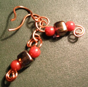 The world does not revolve around silver earrings alone. My shop consists of many bracelets in both silver tones and coppers. However, due to lack of supplies in any other type of metal, my earrings, except one pair, have been all in silver tones. I first made some in copper a few weeks ago. I posted them in my shop as they had a matching bracelet that needed a companion in the shop. The views were good and someone even expressed interest in them, but they are still there. Seeing as how they didn’t fly off of the shelf, I wasn’t eager to make a bunch more in copper.