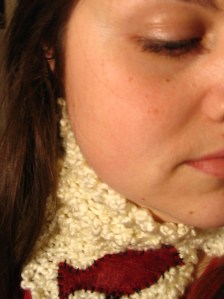 If you can’t tell, that is a little red bird on that scarflette (it kind of looks like a fish).
