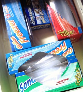 Good for you for being aware, at least!! I don’t use plastic bags of any kind anymore, from leaving the grocery store, to putting things in the fridge and freezer. Its cheaper, too!!I laughed at your cabinets. Mine is stuffed full of plastic containers, and when I open my cabinets, everything falls on my head!