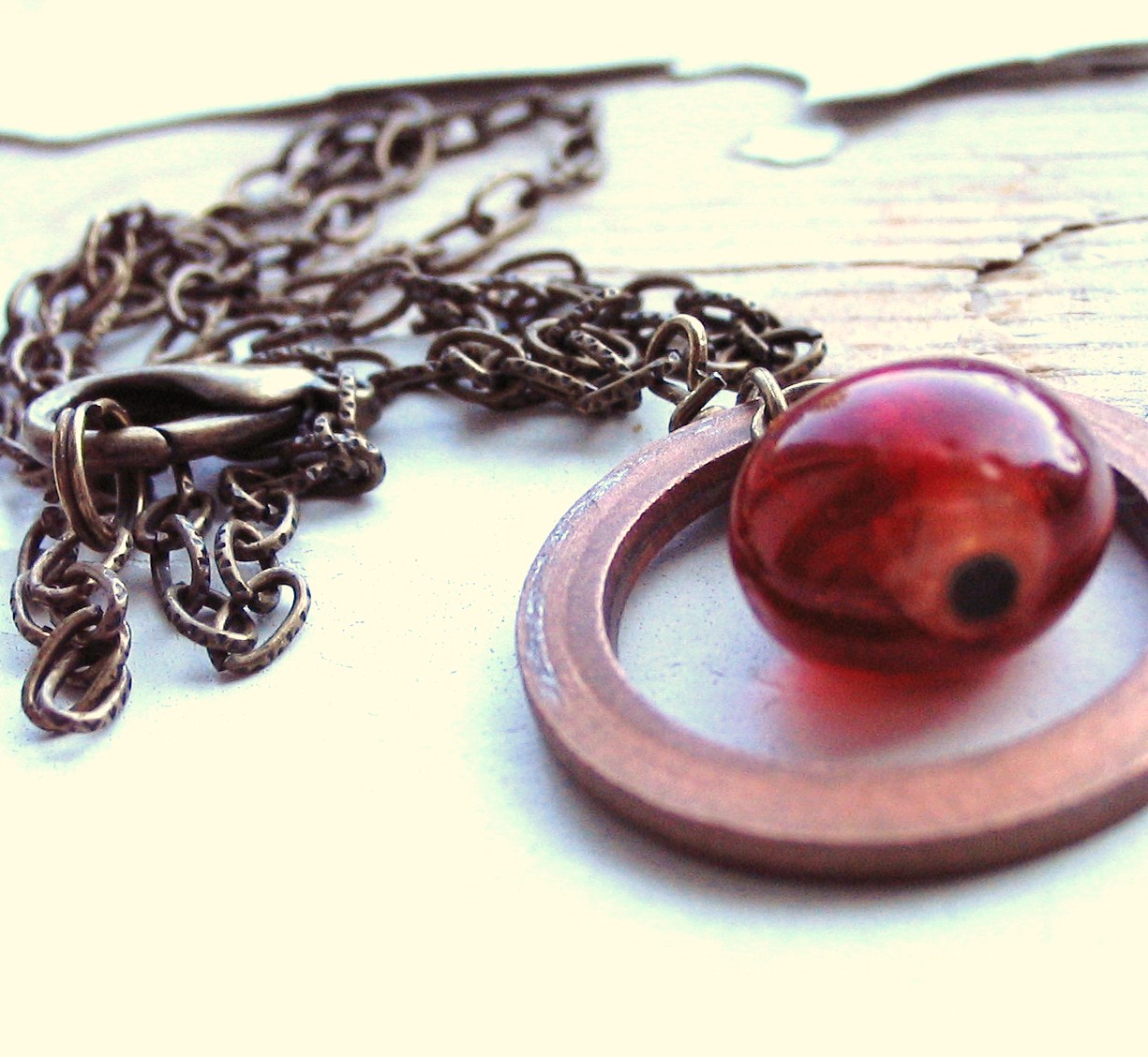 I did manage to list the necklace you see above tonight. I’m calling it Orbital and it can be made in the sky blue you see at the top of this post or the striking red you see below. I can also make it in brown and green. Hopefully all of you will like it as much as I do.