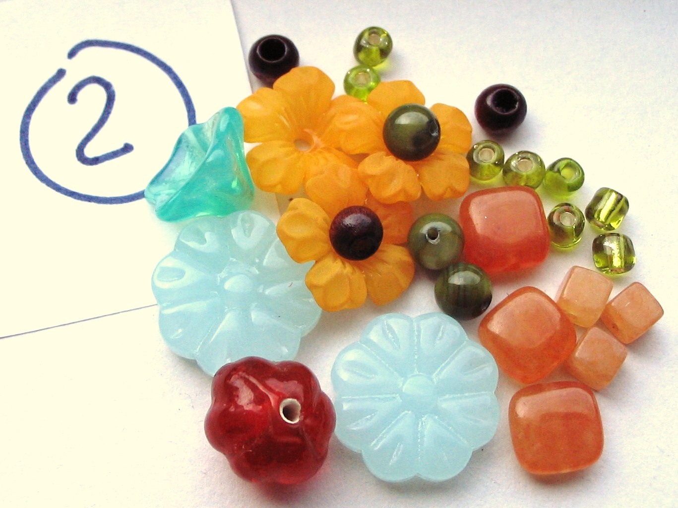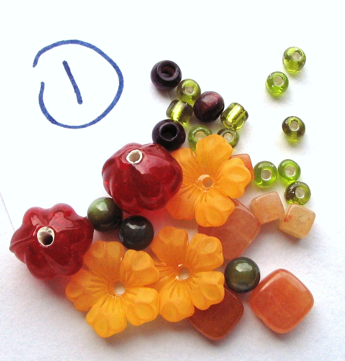 Someone was looking for a bracelet with marigolds. I gave it a shot and my idea was accepted. The person wanting the bracelet even had some beads in mind. I’m really excited about the outcome and am waiting for final approval on the beads. The bracelet will end up representing marigolds, brown eyed susans, and blue grass flowers. I’ve posted the pictures here of the options I came up with (one obviously without the blue). I love all three and might make a similar bracelet for my brick and mortar shop feature in July.