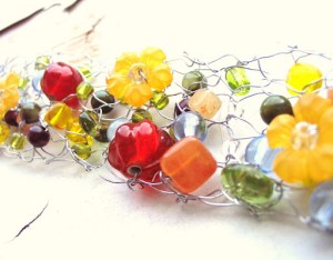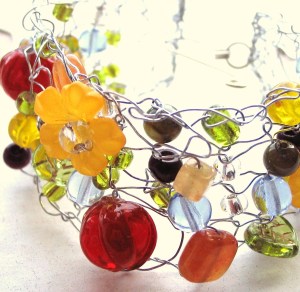 WOW!! This is so totally perfect! I love how light and airy the knitting makes it. When I first saw the colors of the beads in a previous post, they looked kind of like fall colors. But then when you knit the bracelet they all of a sudden become so bright and summery. Your customer will LOVE this!!