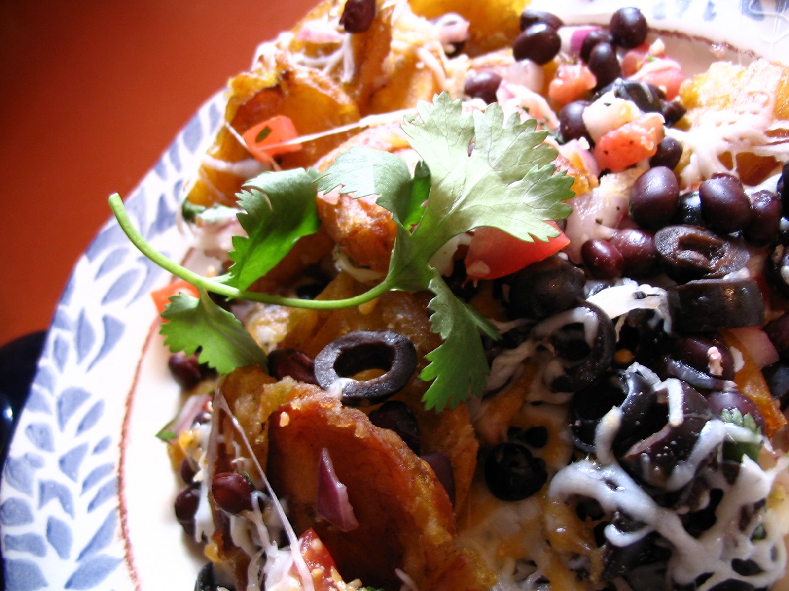 This was lunch today. I had some leftover fried plantains and black bean salsa so I decided to attempt some nachos (similar to what I used to get at Bahama Breeze in Austin – they aren’t there anymore). The taste was okay, but they were a bit dry. I’ll have to try it again sometime – they did look lovely though… didn’t they? The plantains were fabulous with some cilantro sauce last night. Yummmm – at least all was not lost.