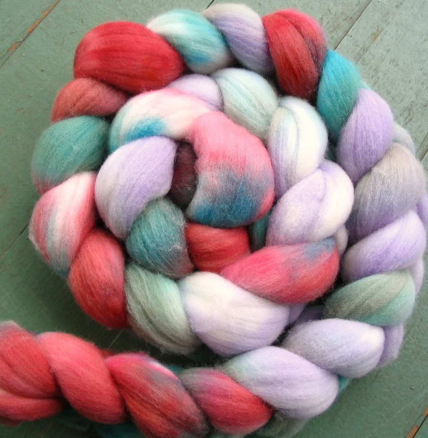 It’s official, I have fallen in love with dying wool. Each time I’ve done it, I’ve learned another thing or two about mixing colors and I can’t wait to dye some more next week. The last batch I did had more muted tones (still bright but not as neon). I added some browns and such to the colors and I love how they turned out. The ones pictured here are Desert Sunrise and Dusty Rose. Both are available in the shop.