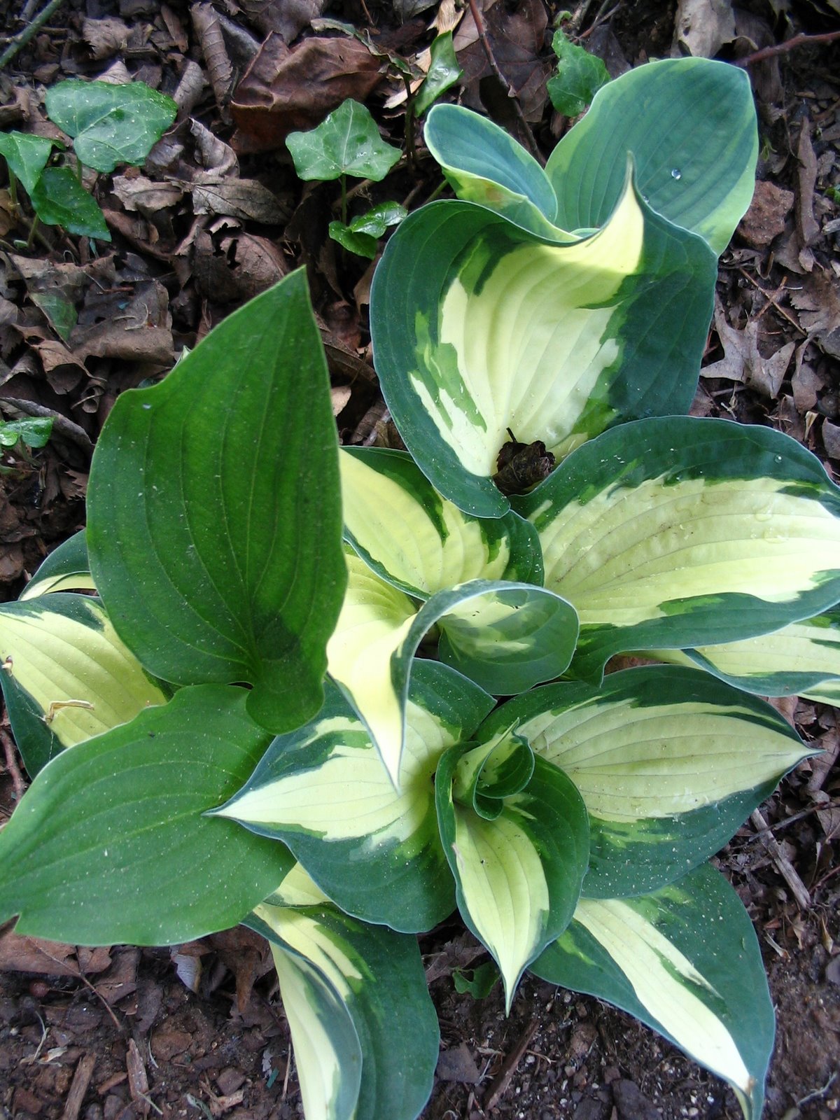 It is a mystery to me why three different varieties of hostas have appeared this spring in the spot where I only transplanted one last summer. Because hostas last well into the fall months, I’m not sure why these two were not growing in that spot before I planted the new one. However, there they grow – three different varieties of hostas, happily sharing the same little spot.