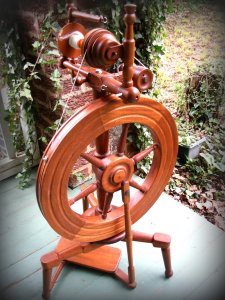 If I seem preoccupied for the next few days, it’s because I brought home a new baby yesterday. While browsing through Craigslist, I found a spinning wheel for sale. After some research and lots of help from people on Ravelry, I found it was a Mathieson wheel from New Zealand. It came over to NWArkansas by way of Ebay a few years ago, and lucky me, the owner just never got into spinning.