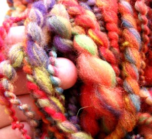 Last night, it spoke to me. It wanted to be a super chunky, way funky, plied yarn. So out it came, I spun it up pretty thick (for my standards) and plied the heck out of it. I fell in love with it all over again. I don’t know what it is going to be yet, but that will come to me… in time.