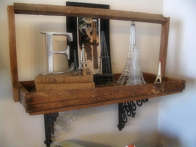 And then they haunted me. For 3 weeks I thought about using those baskets in a creative way to solve 2 problems. 1 – a lack of shelf and display space in my condo and 2 – a lack of pretty things in my bedroom. When the thought of those wooden utility basket thingies selling to someone else was too much to bare, I went up to the booth, rescued them and brought them home with me.