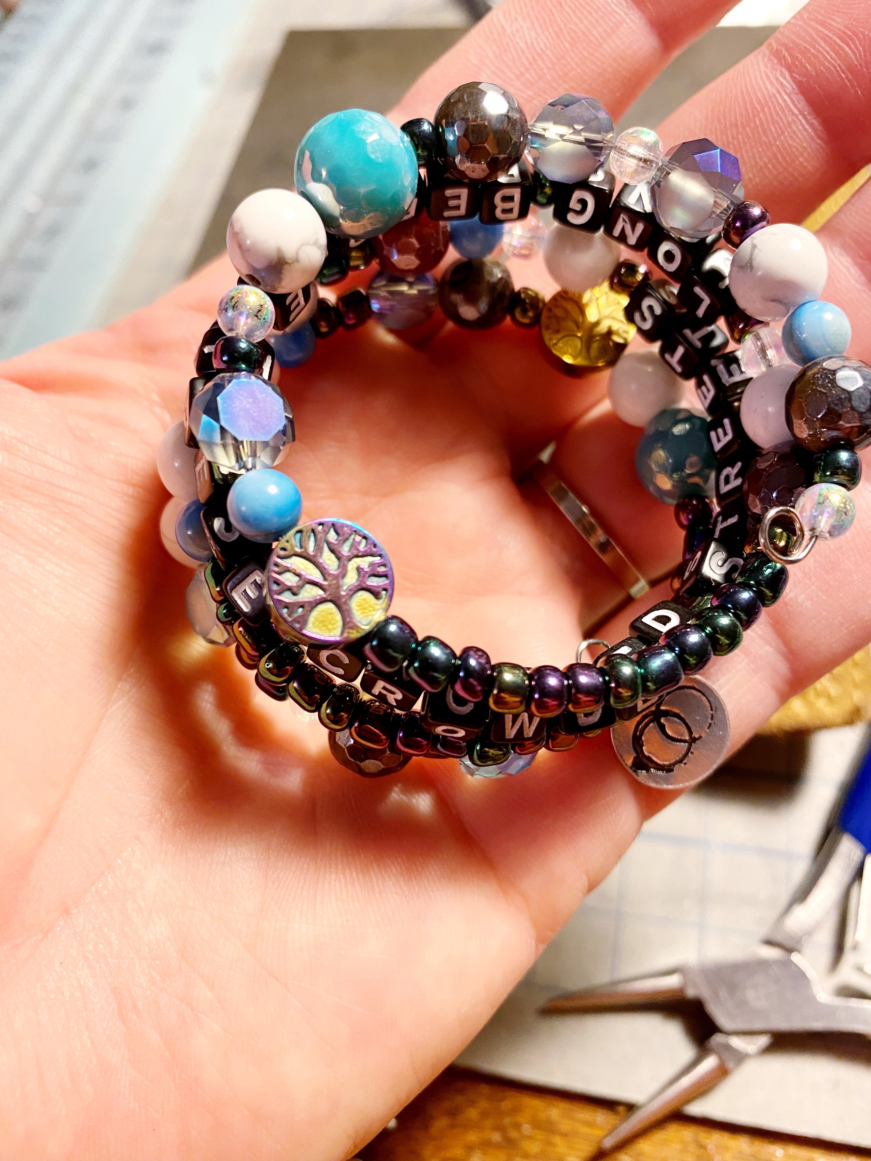 I grasped this last night as I sat in my studio playing with beads and metal. Diving into the creative freedom the album series allowed me, I started to string lyrics together that weren’t the ones typically requested or thought of when working on a piece of jewelry. Like the album series, there is no expectation to create a best seller with this. I just used lyrics I loved, but never see used in any of the fan groups I follow. It was freeing and opens an entire world of places to go, ears to perk, and hearts to grab.